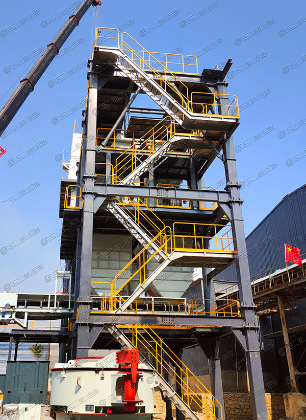 這套V9-150制砂樓,總投料量為150噸,整條生產(chǎn)線設(shè)備選型為:制砂選粉一體機(jī)、空氣篩、粗細(xì)粉分離機(jī)等。